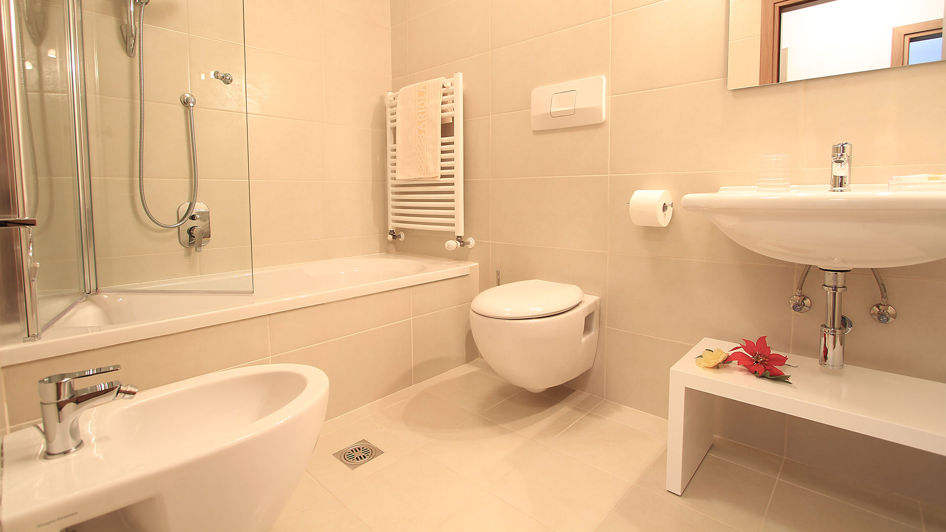 Die Ferienwohnungen der Ariola, ausgestattet mit einem kleinen, aber voll ausgestatteten Wellnessbereich bestehend aus einer belebende Dusche, finnische Sauna, Dampfbad und Jacuzzi, zielt darauf ab, ihre Gäste auf 360° zu verwöhnen, da es nicht zu vergessen ist das ein wichtiger Teil eines Urlaubs in den Dolomiten auch gegeben ist durch Entspannung.