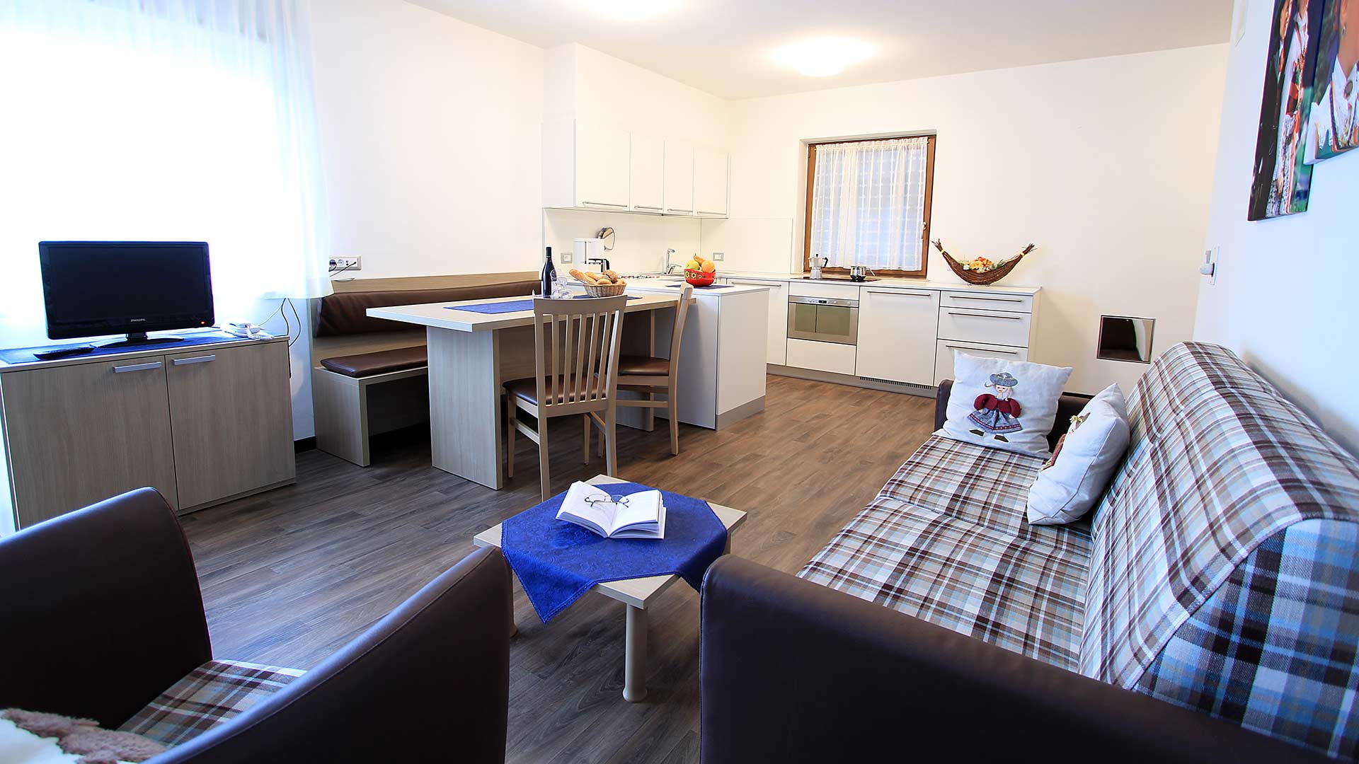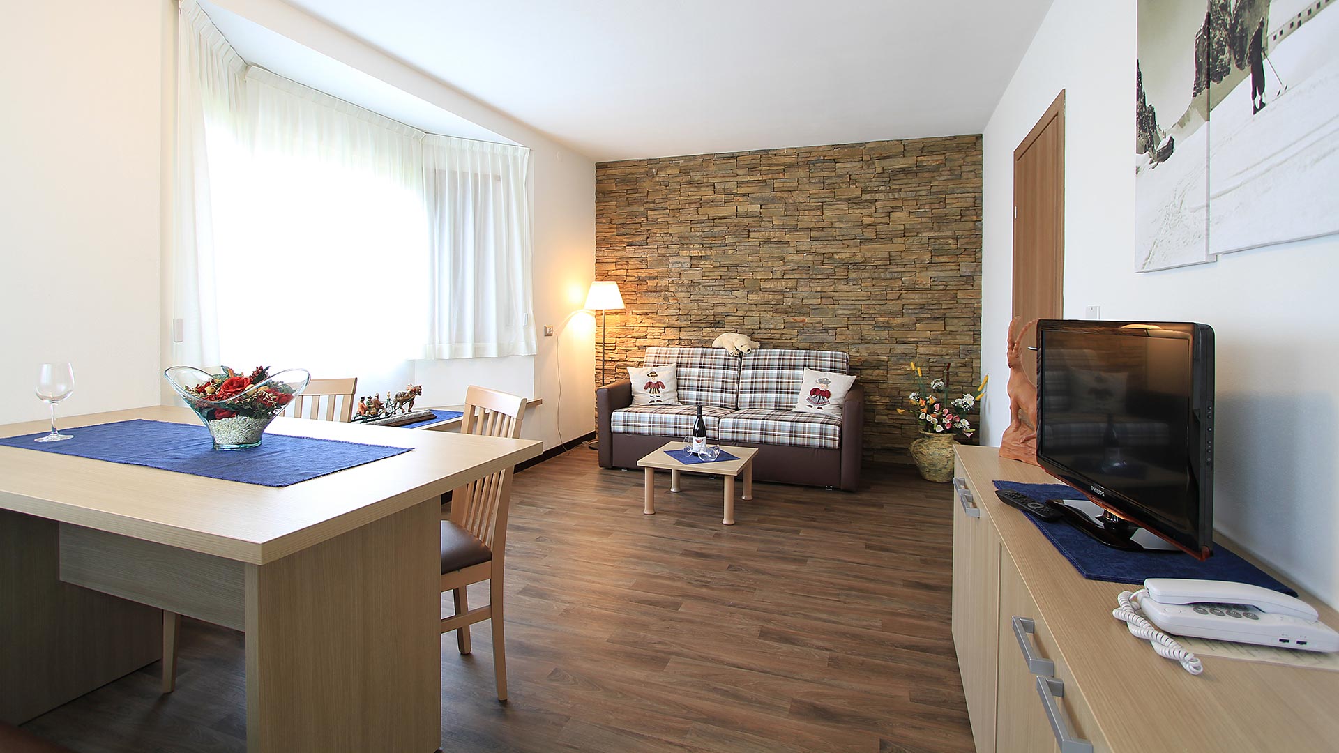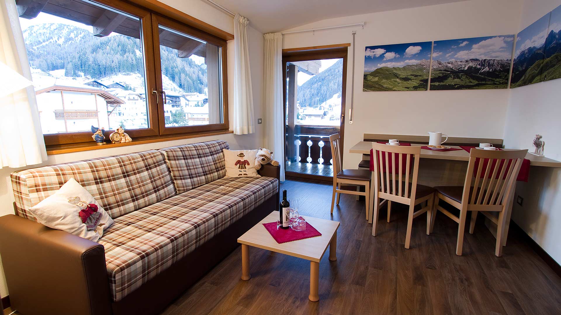 Die Ferienwohnungen, die traditionell und funktionell ausgestattet sind, sind ideal für alle Liebhaber der Natur und der Wintersportarten. Unsere Struktur befindet sich neben dem Eisstadion und dem Kinderspielplatz und Gehweg direkt an dem Fahrradweg der ganz Wolkenstein verbindet, unmittelbar im Zentrum und der Skipiste Nives .